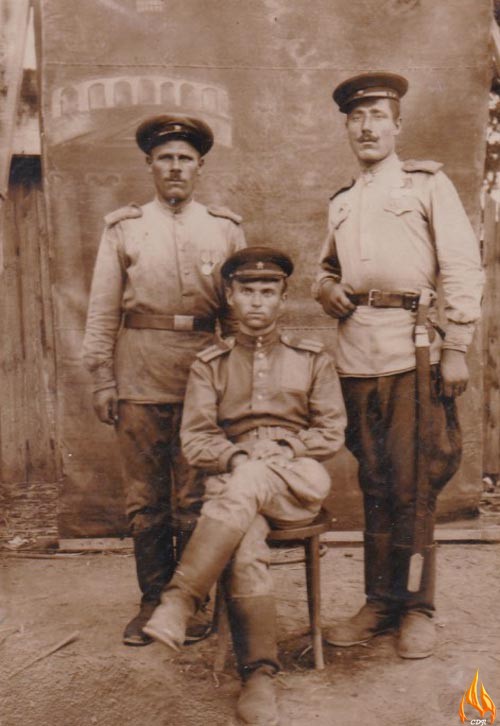 В 1942 году в городе Каменск дедушка работал в военкомате, его туда отправили после первой контузии, дали комнату. Туда приехала моя бабушка. Она стала прочной опорой мужа на всю жизнь. Дед ушёл через какое-то время на фронт. Ему предложили его жену оставить вместе с жёнами других военных, чтобы спрятать в надёжное место. Но мой дед отказался от их услуг. Когда немцы вошли в деревню, кто-то предал, что все эти женщины являются жёнами военных, всех их фашисты расстреляли. Моя бабушка целые 70 лет молчала о том, как ей удалось избежать этой участи. Только недавно с огромным трудом уговорили её рассказать про себя в этот период. Ей тогда было 23 года. «В Каменске находились военные, которые вышли из окружения из-под Харькова, им дали возможность какое-то время передохнуть. У одного офицера там жила сестра жены, и туда жена отправила дочку 6-7 лет по имени М. К Дону вошли немцы, военные, естественно, ушли на фронт, а людей из Каменска стали эвакуировать. Офицер отдал бабушке дочку М, у него не было выхода. У всех женщин были свои дети, а бабушка была одна. Пароход всё время бомбили, через какое-то время их высадили на берег, из-за бомбёжки нельзя больше было плыть. 2-3 дня пассажиры с детьми находились на берегу. Потом пошли в деревню, которая находилась приблизительно в одном километре от пристани. Местные жители приняли беженцев, как могли, кормили их, а беженцы меняли вещи на продукты, собирали в совхозе, который в это время не работал, помидоры, меняли их на другие продукты. Во время эвакуации на пароходе бабушка и ещё две женщины держались друг друга. У одной было 2 ребёнка, у другой 3 ребёнка. Бабушка смотрела за отданной ей девочкой М. Чуть позже через деревню прошли войска СС, но они в этой деревне не останавливались, а пошли дальше. Однако деревня была в кольце немецкой армии. Потом прошли румыны, итальянцы. В этой деревне бабушка с девочкой М жила 4-5 месяцев. Потом женщины, с которыми бабушка эвакуировалась, решили, что надо узнать, можно ли возвращаться. Послали бабушку. Она пошла с девочкой М и дошла до Ростова-на-Дону, где жила семья девочки М, отдала матери дочку. А у этой женщины была ещё одна дочка, которой было 17 лет. В это время немцы молодых девушек и женщин отправляли работать на работу в Германию. Женщина попросила бабушку, чтобы та со старшей дочкой уходила. Бабушка с этой девушкой пошла назад и вернулась в деревню к знакомым женщинам. Одна из них родом с Кубани и предложила бабушке идти с ней к ним. Бабушка пошла, там прожила одну неделю, ей дали люди зерна. Бабушка, которая была беременной на последней стадии, со старшей дочкой женщины и с котомкой зерна пришла в Ростов-на-Дону к матери девочек и стала у них жить. Женщина приняла бабушку, так как она почти 7 месяцев жила с её дочками, кормила их, чем могла. Бабушка отдала хозяйке всё зерно. Она пришла к ней где-то в декабре месяце и в новый год родила дочку, то есть мою маму. Когда бабушка рожала девочку, она была одна в комнате и сдерживалась, сама перегрызла пуповину зубами. Так как у этой хозяйки на квартире жили румыны, они узнали о рождении ребёнка, принесли хлеб, молоко и другие вещи. Румыны также дали ей 300 рублей. Бабушка говорит, что это были большие деньги, она их отдала хозяйке». Один румынский офицер был крестником моей мамы. Хотя Церковь была в изгнании при Советской власти, маму смогли крестить.