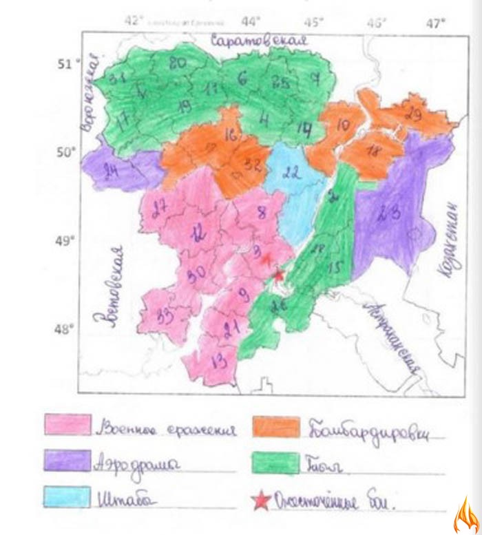 К середине лета 1942 гоа сражения Великой Отечественной войны докатились до берегов Волги. С 14 июля 1942 года указом Президиума Верховного Совета СССР Сталинградская область была объявлена на осадном положении. Первыми встретили врага Клетский, Суровикинский, Серафимовичский, Чернышковский районы области. Изучив события, которые происходили на их территории, мы можем сделать вывод, что на территории этих четырех районов велись жестокие бои. Изучая памятные места в этих районах, мы выявили, что в каждом из них в настоящее время имеется множество мест памяти о тех сражениях в период Великой Отечественной войны. Как мы понимаем, военных памятников по нашей области много. Но мы решили определить именно те, которые связаны именно с военными событиями в этих четырех районах. Изучив местоположение этих районов и Волгограда, мы определили дальнейший маршрут движения немецких войск. Рассматривая карту, мы решили, что для того, чтобы дойти до главной цели, им необходимо было пройти и другие районы области, которые расположены на правом берегу реки Волга. Но изучив информацию о военных событиях, мы выявили, что в некоторых из них только велись бои, в некоторых находились военные штабы, а отдельные подвергались бомбардировке. Несколько районов области являлись тылом. На основании изученной информации отдельных районов правобережья Волгоградской области мы создали карту, на который отразили степень участия районов области в годы Великой Отечественной войны.