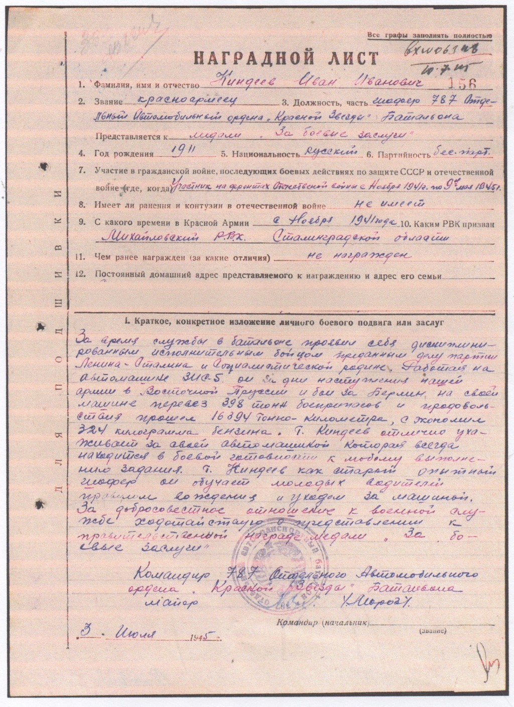 Мой отец, Мармерштейн Хаим Самойлович, политрук Красной Армии (рота 482 отдельного...