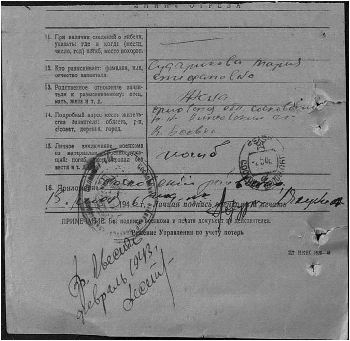 Судариков Григорий Парфилович - Воевал в 39 гвардейской дивизии. Погиб в феврале 1943 года.