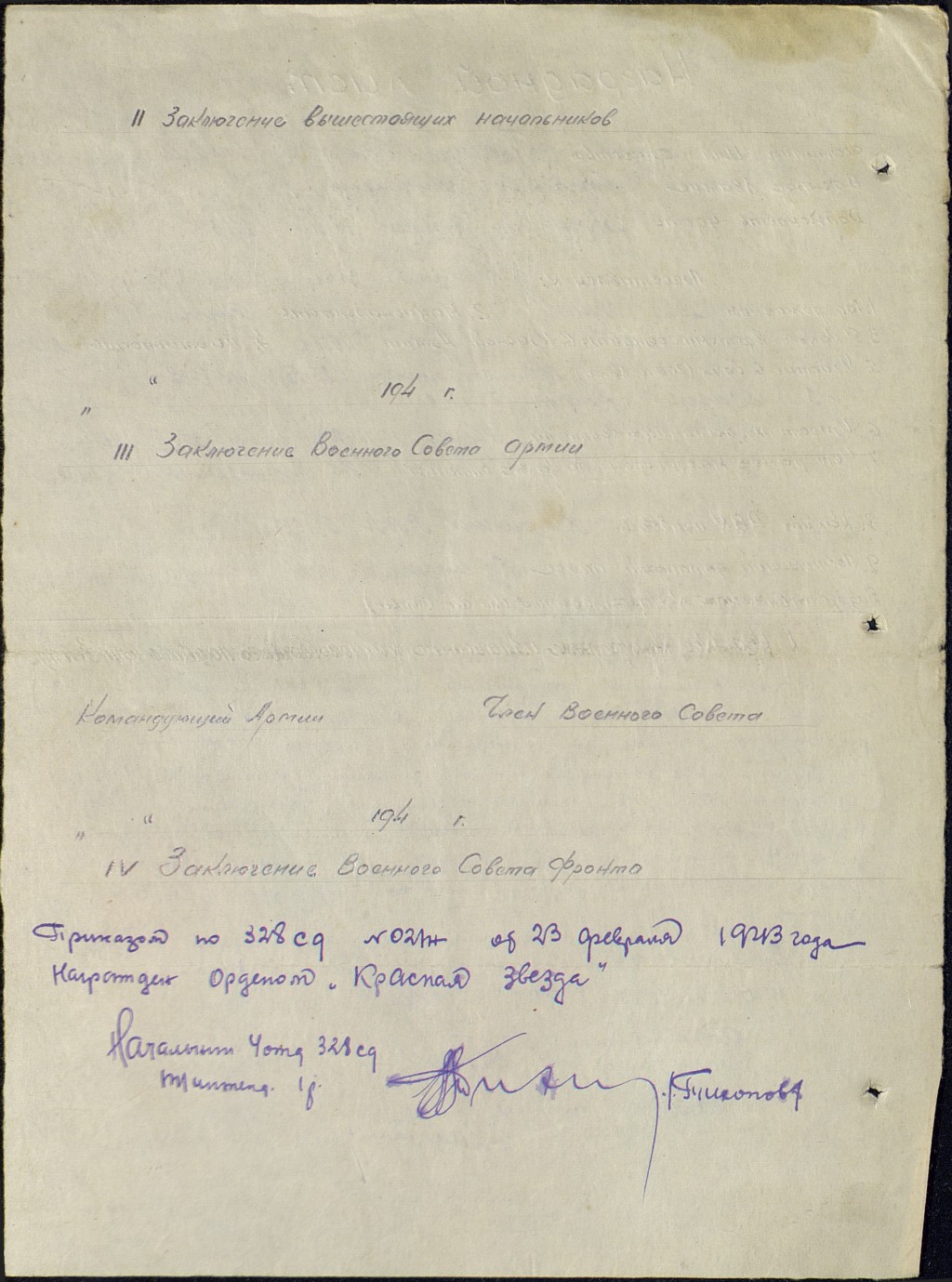 наградной лист 2 лист
