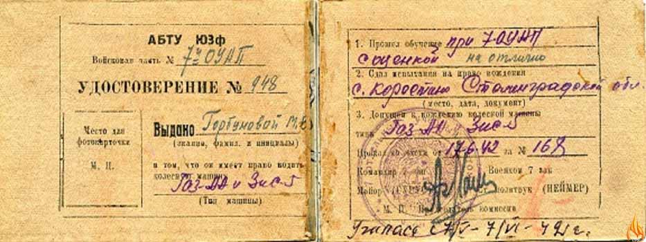Остракова (Горбунова) Мария Васильевна - Всю войну прошла в должности шофера.