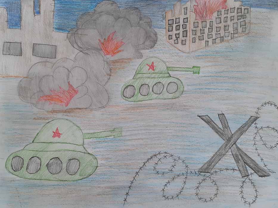 Рисунок "Реконструкция ВОВ" Мурыгина Полина Дмитриевна, МОУ «Лицей №1», г. Волжский, Волгоградская область, Россия.