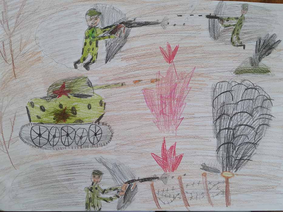 Рисунок "Сталинградская битва" Белякова Ксения Алексеевна, МОУ «Лицей №1», г. Волжский, Волгоградская область, Россия.