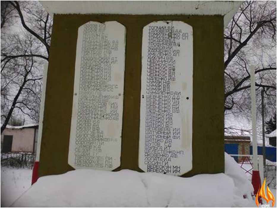 На памятнике около двухсот фамилий односельчан, павших в боях за Родину. Среди имен на обелиске есть и фамилия Лопата Ивана Алексеевича.