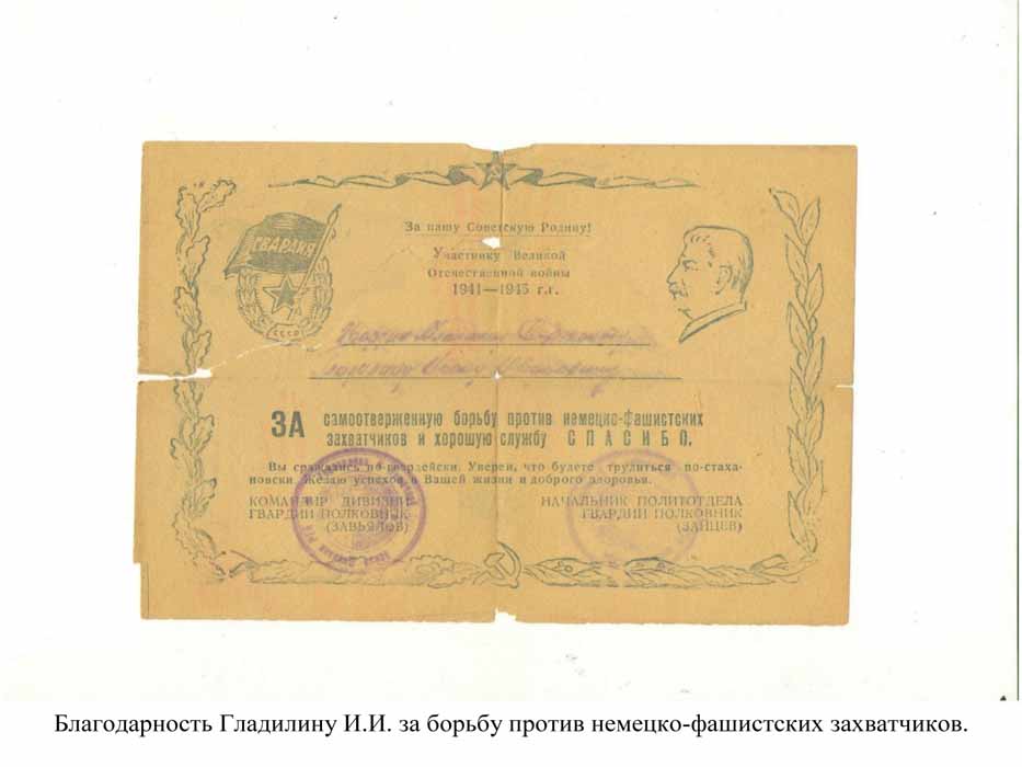 Гладилин Иван Иванович, родился 23 сентября 1920 года в с.Терса Еланского района Сталинградской области.