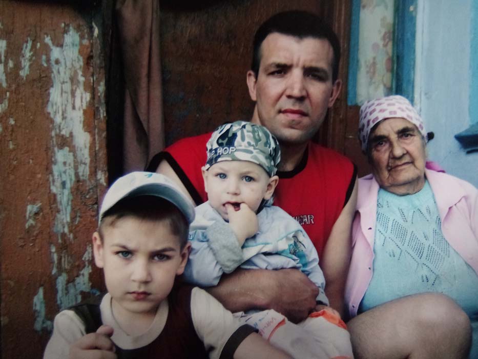 На этой фотографии прабабушка, мой папа и я со своим младшим братом
